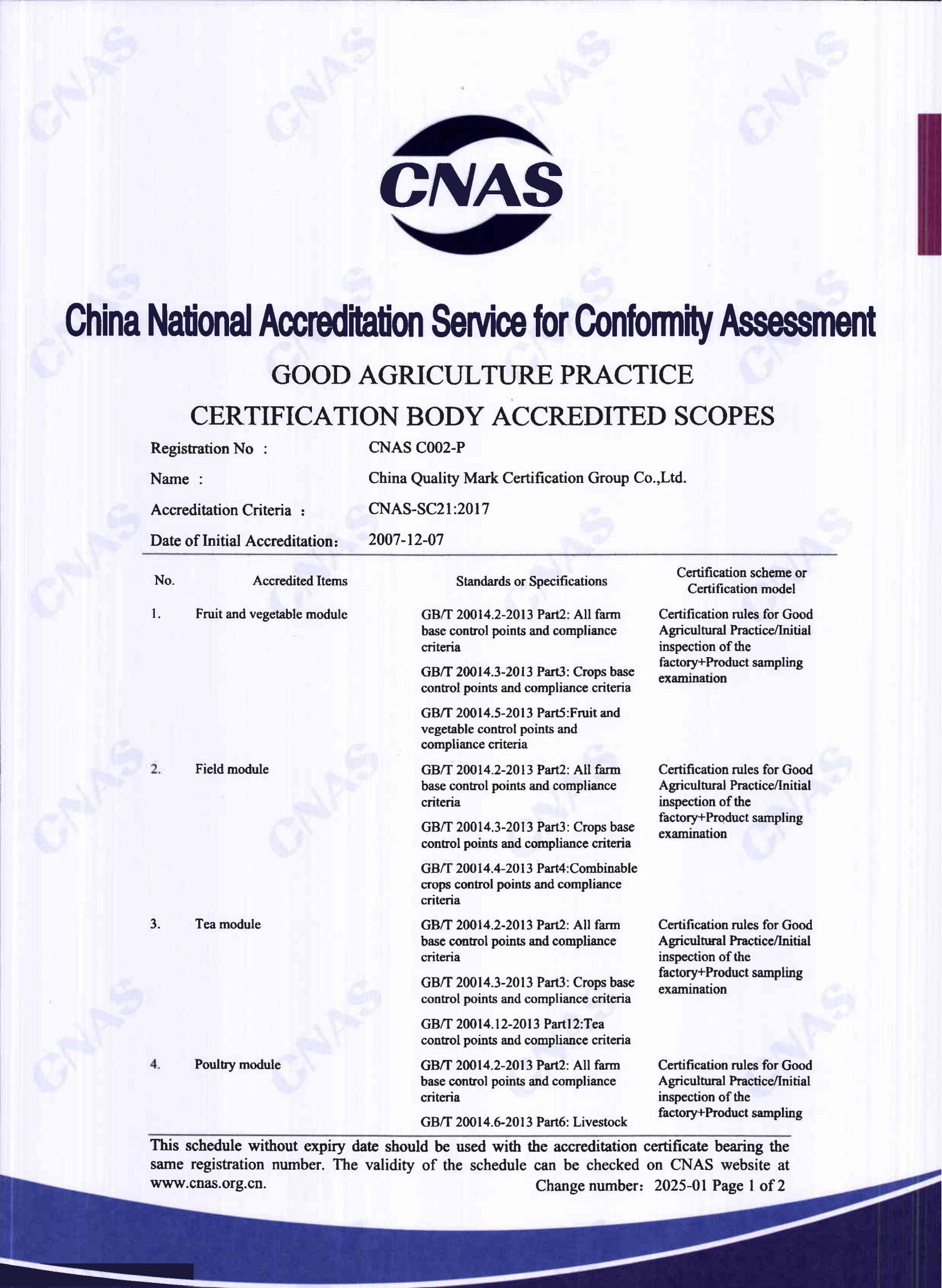 良好農業規范GAP認證認可證書