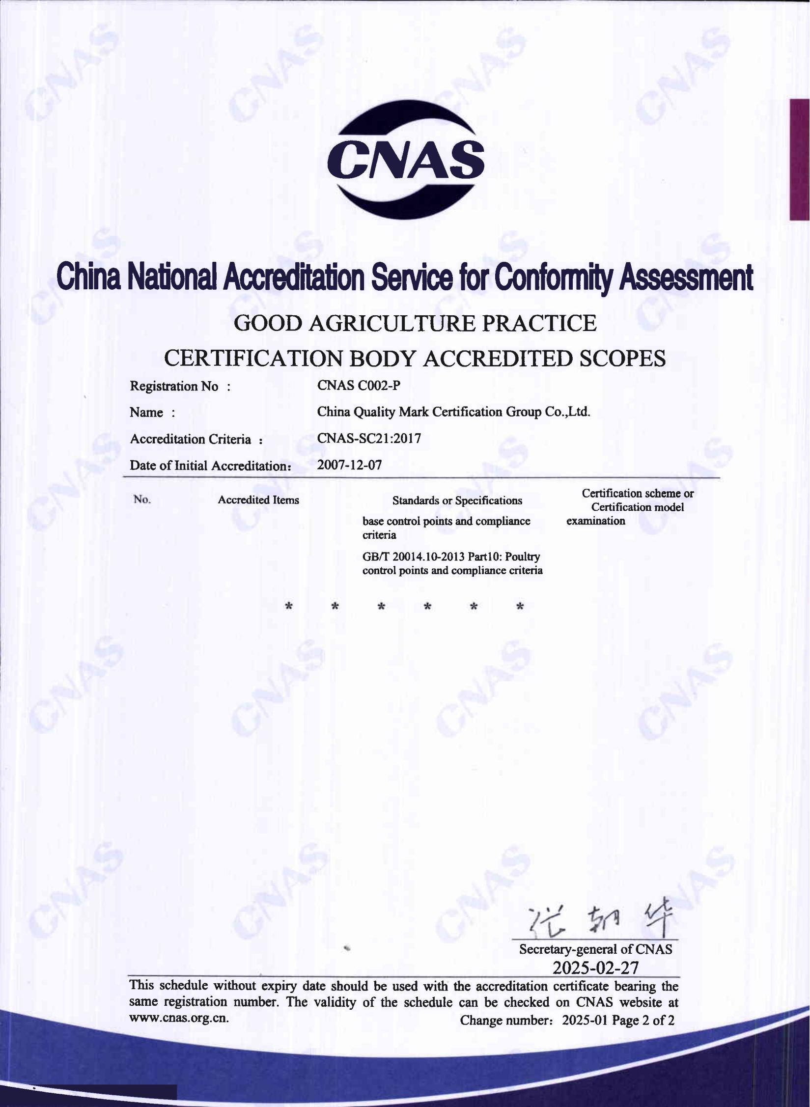 中國認證認可協會確認證書