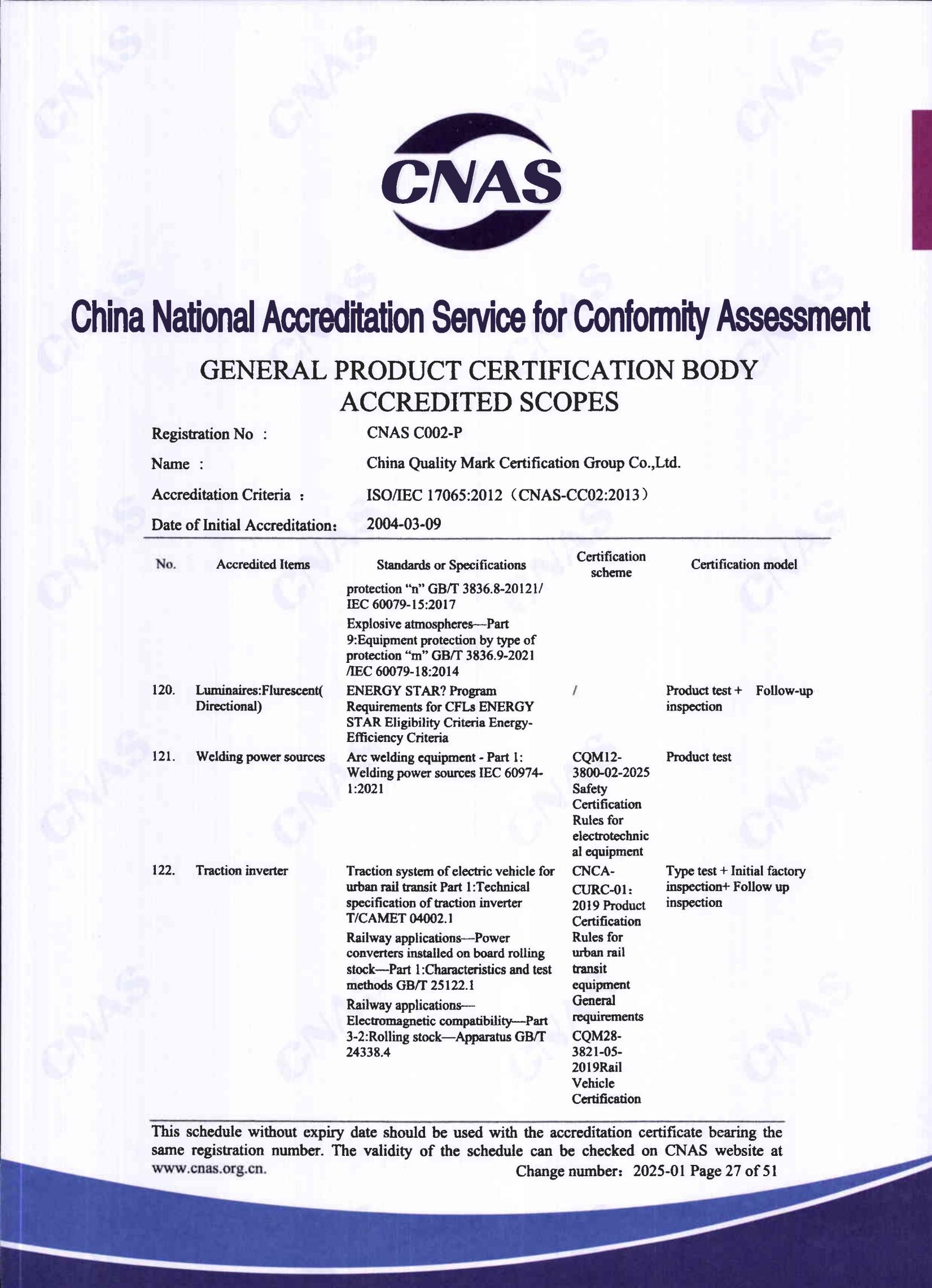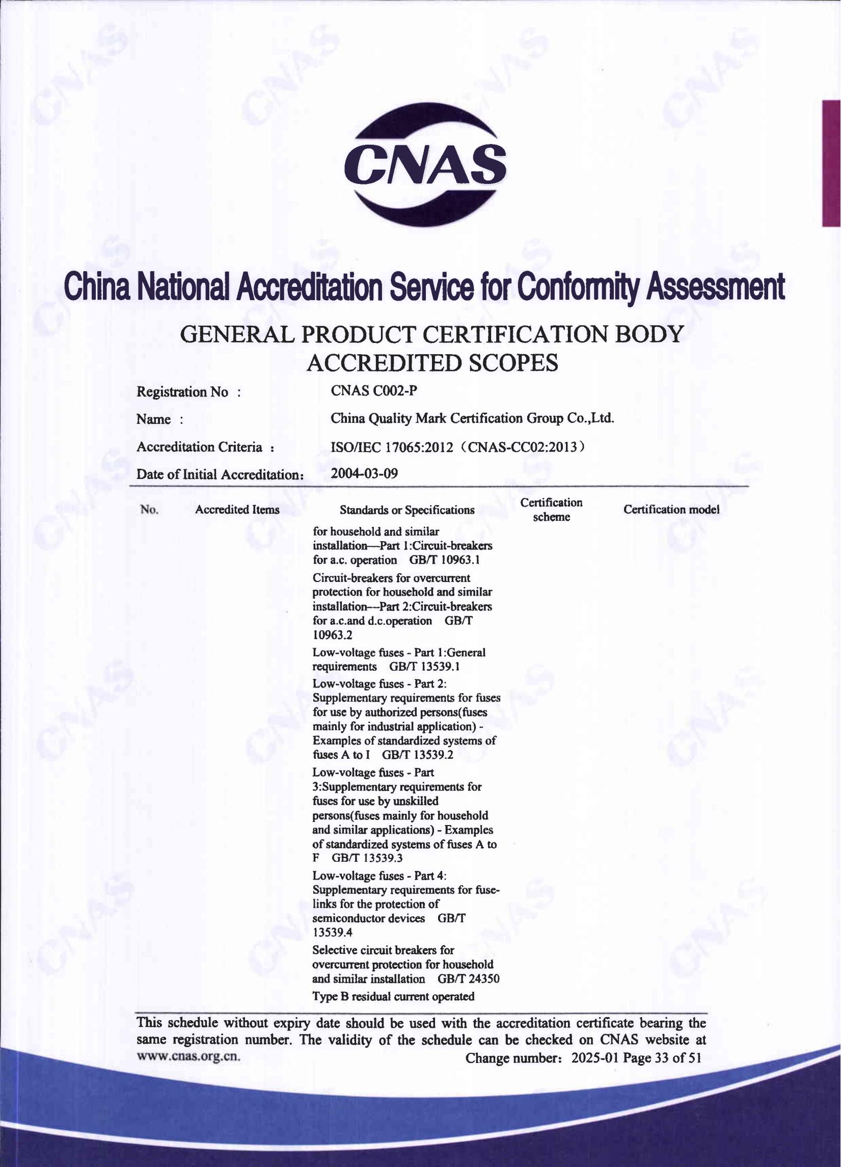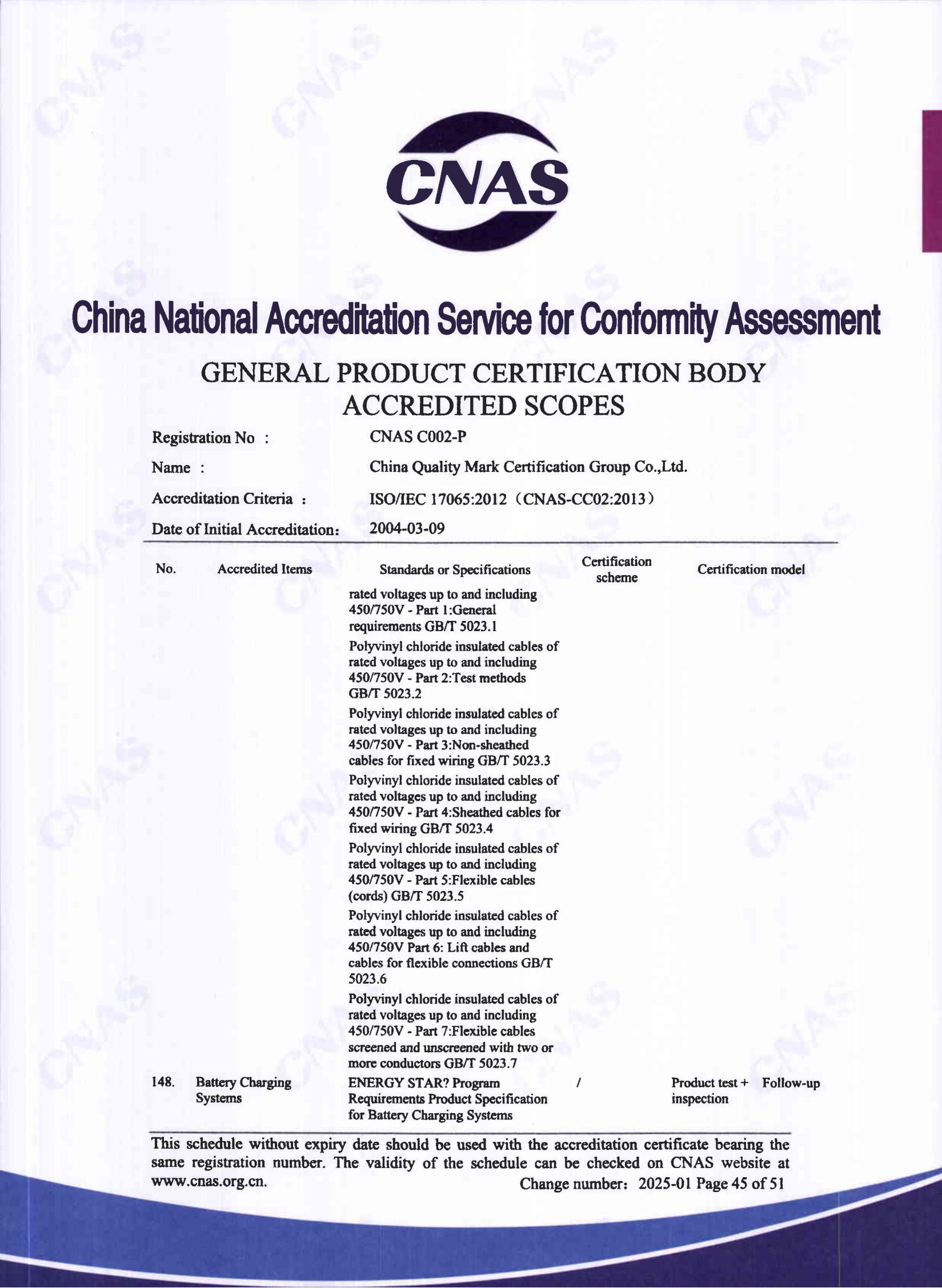 中國認證認可協會確認證書