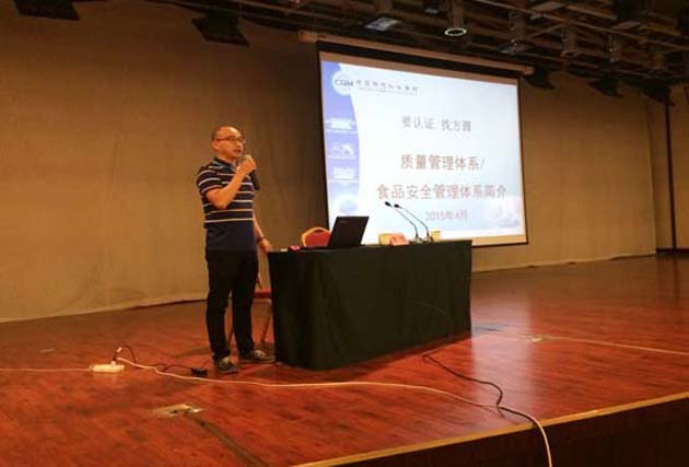 2015年4月28日,方圓廣東公司應揭陽市食品工業行業協會邀請,為揭陽市食品工業行業協會食品安全知識培訓班授課,為參會企業講解了質量管理體系(ISO9001)與食品安全管理體系(ISO22000)認證的相關知識與要求,得到了參會企業的一致好評。