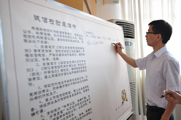 啟動儀式上,省質監局通報了今年浙江省6月9日世界認可日主題系列活動的安排和要求。為強化社會責任,提倡誠信檢驗,現場還組織檢驗機構開展了《誠信檢驗承諾》簽訂活動。