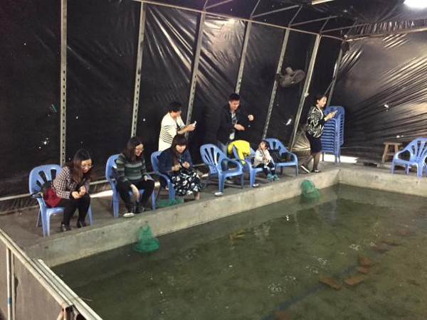 活動現場,大家分成兩隊,一隊進行燒烤活動,另外一隊去蝦場釣蝦,大家忙的不亦樂乎,現場歡聲笑語不斷。盡管不少同事都是第一次釣蝦,但很快掌握要領,選好桿子,系上餌料,認真地坐在水池旁耐心等待龍蝦上鉤,同事們在體驗釣蝦樂趣的同時也度過了一個不一樣的下午。