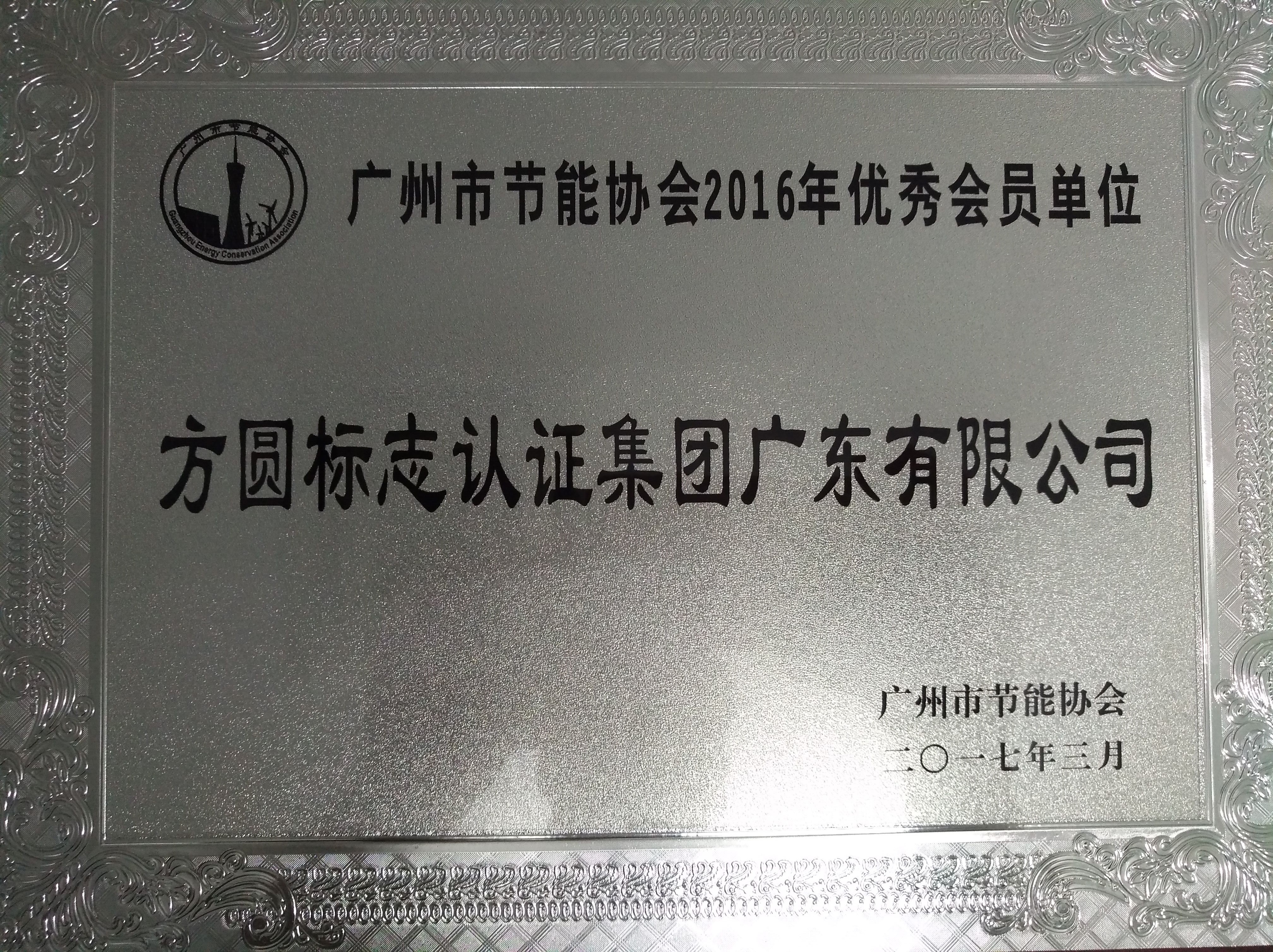 方圓廣東公司榮獲廣州市節能協會2016年優秀會員單位