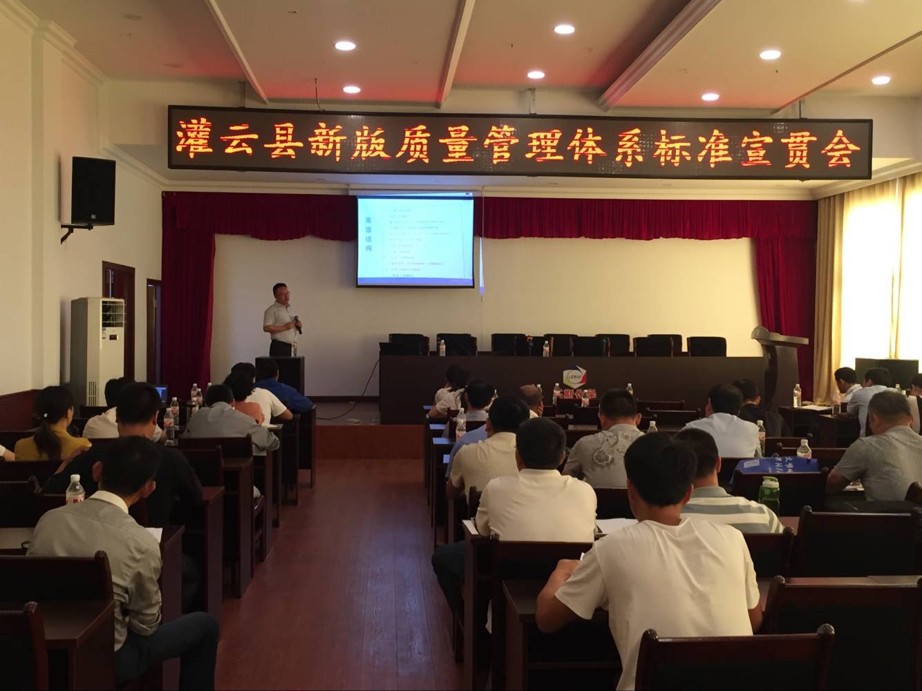 為開展質量提升行動,積極響應國家質檢總局、國家認監委關于廣泛開展新版質量管理體系標準宣貫學習活動、加強全面質量管理的通知精神, 9月21日,連云港市灌南縣、灌云縣市場監督管理局分別在灌南化工園區和灌云化工園區舉辦了新版質量管理體系標準和宣貫培訓活動,本次培訓活動由方圓江蘇公司承辦,灌南化工園區30多家企業的60余質量負責人、灌云化工園區20多家企業的40余質量負責人參加了此次宣貫培訓活動。