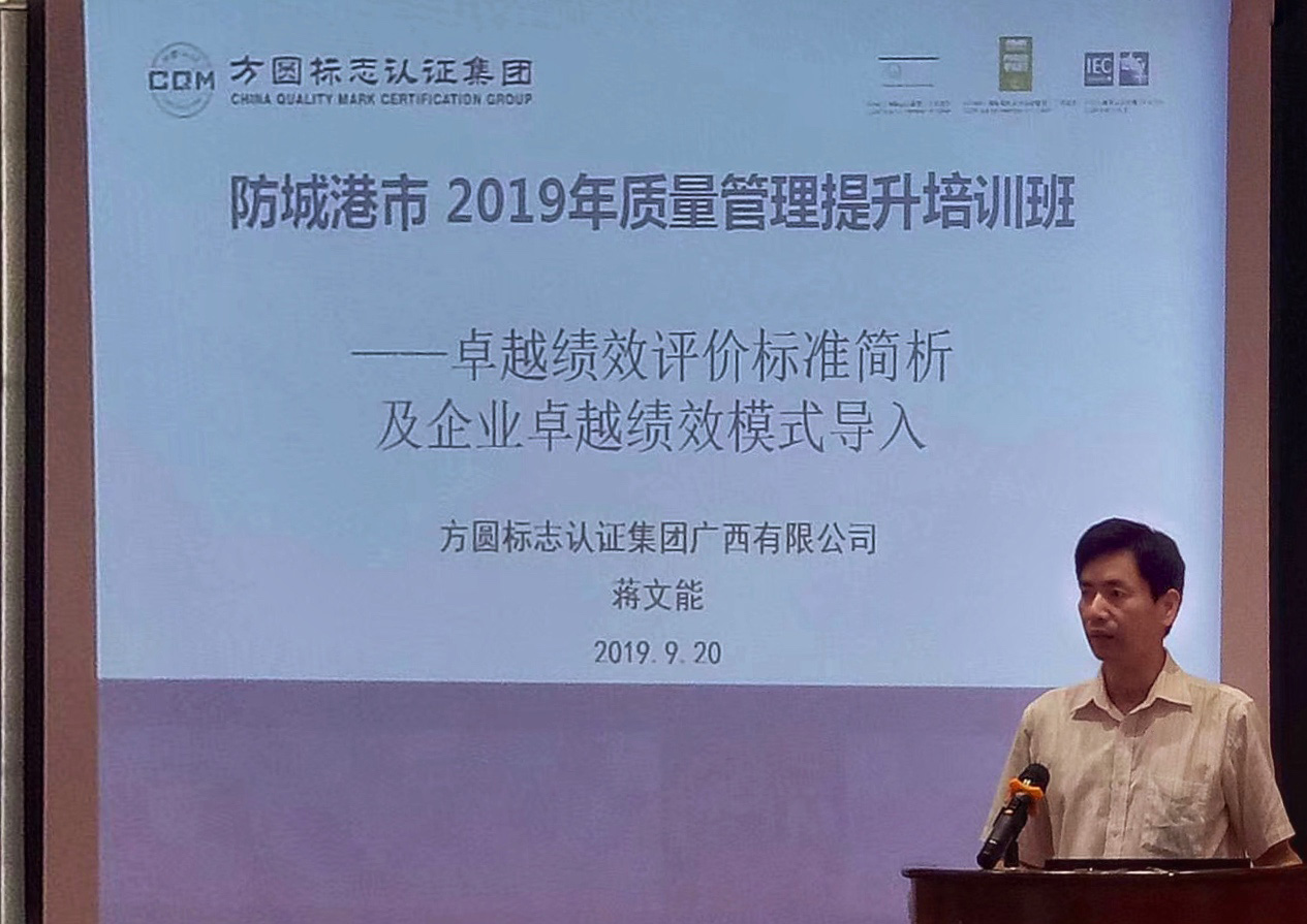 在9月20日,防城港市市場監(jiān)管局舉辦防城港市質(zhì)量管理提升培訓(xùn)班上,方圓廣西公司安排了公司宏觀質(zhì)量管理專家就黃寶臨教授就該市質(zhì)量強(qiáng)市工作與結(jié)合高質(zhì)量發(fā)展進(jìn)行了解析,公司質(zhì)量管理方面老師就該市開展政府質(zhì)量獎的相關(guān)評審工作和卓越績效管理模式所涉及相關(guān)標(biāo)準(zhǔn)進(jìn)行授課。該市相關(guān)部門負(fù)責(zé)人和企業(yè)代表100多人參加了培訓(xùn)班。