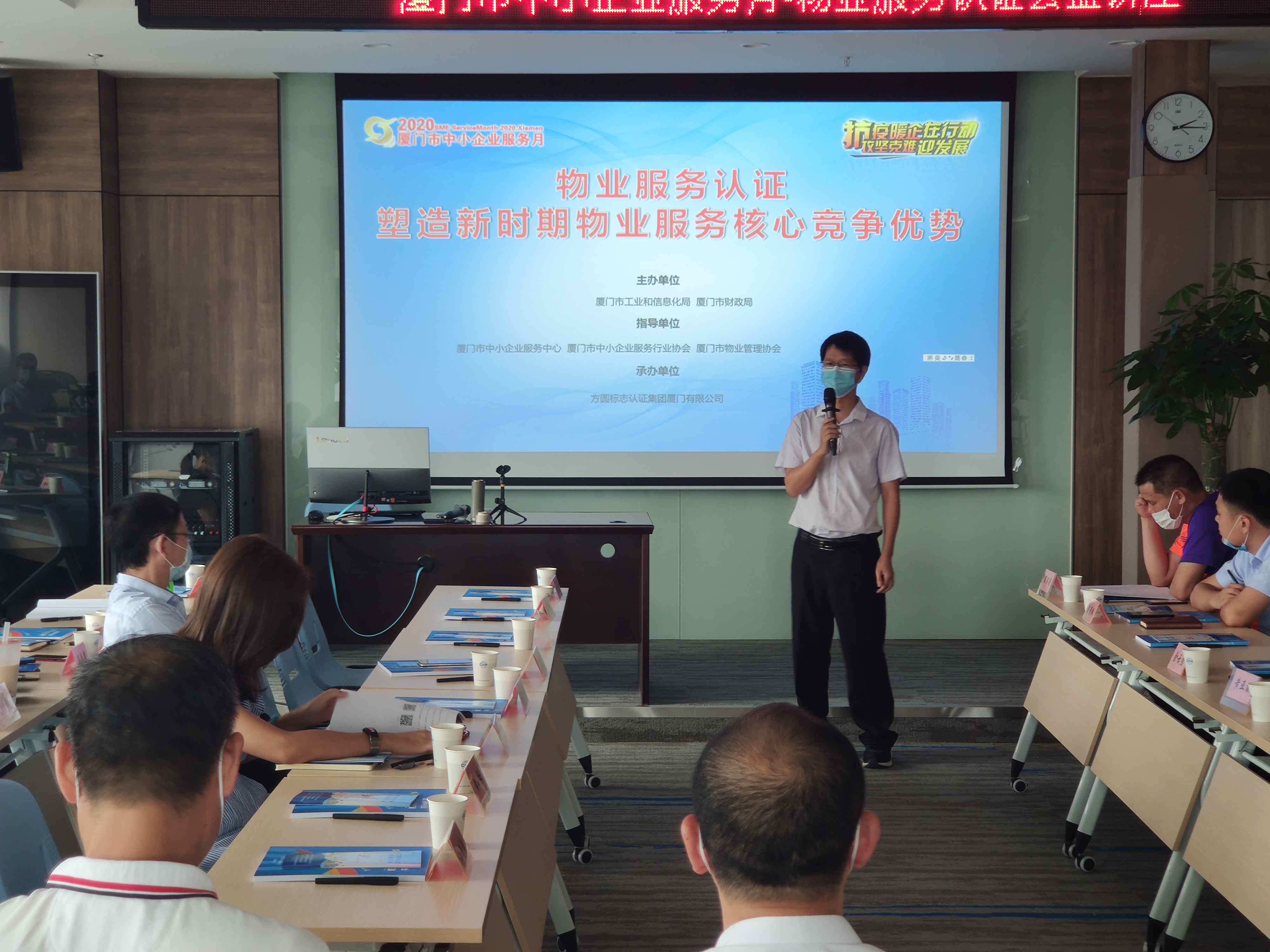 時間:2020年07月08日 6月28日,由廈門市工業(yè)和信息化局、廈門市財政局主辦,廈門市中小企業(yè)服務(wù)中心、廈門市中小企業(yè)服務(wù)行業(yè)協(xié)會、廈門市物業(yè)管理協(xié)會、方圓廈門公司承辦的“物業(yè)服務(wù)認證-塑造新時期物業(yè)服務(wù)核心競爭優(yōu)勢 ”公益講座在集美區(qū)軟件園三期廈門方圓培訓(xùn)教室順利舉辦。本次講座為2020年廈門市中小企業(yè)服務(wù)月活動之一。
