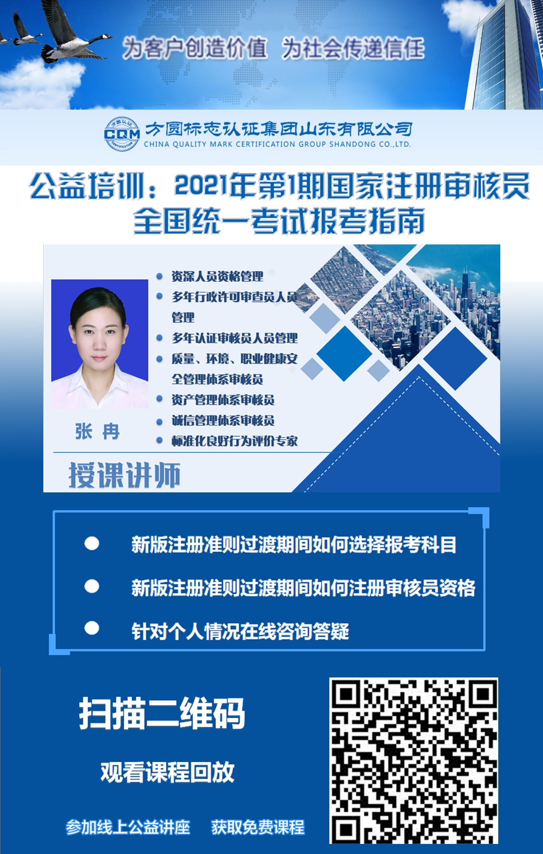 方圓山東公司成功舉辦2021年第1期國家注冊審核員全國統一考試報考指南線上公益培訓