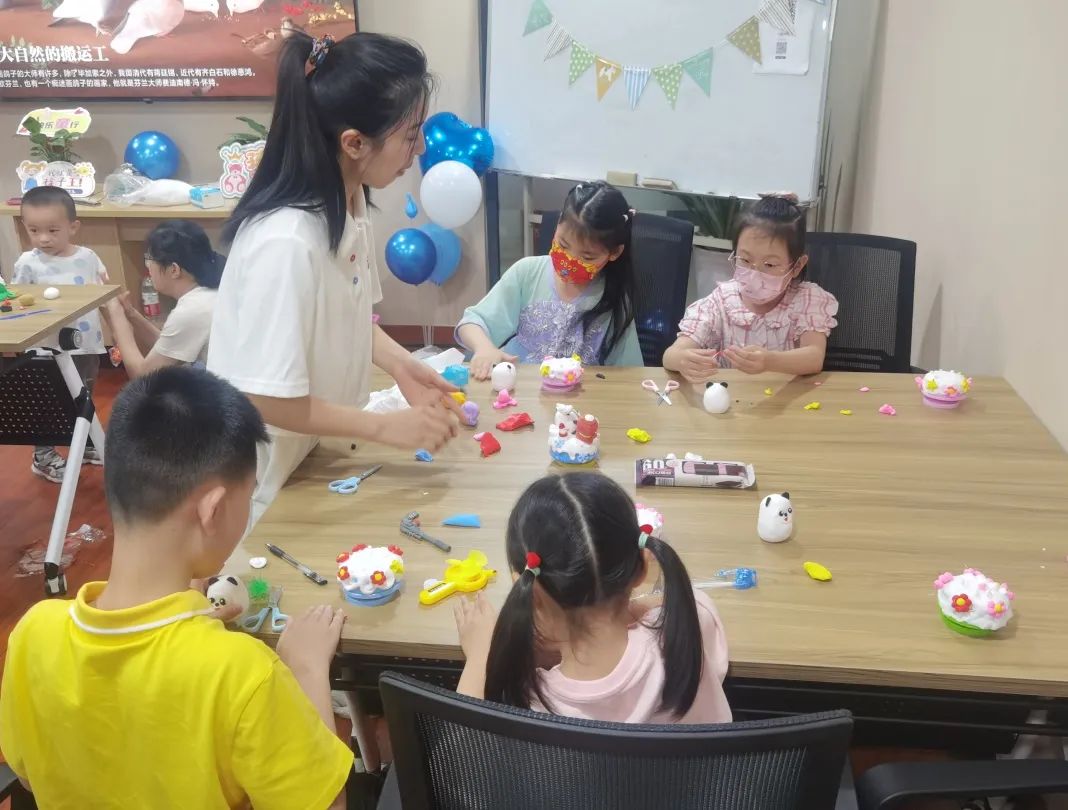 在手工制作過程中,小朋友們和家長非常投入,小朋友們在老師的指導下自己動手、利用手中色彩艷麗的黏土認真地思考和制作,運用自己靈巧的雙手制作出各種樣子的作品,有可愛的粽子、冰墩墩音樂盒,小齡兒童有爸爸媽媽在一旁協助,整個活動現場其樂融融。