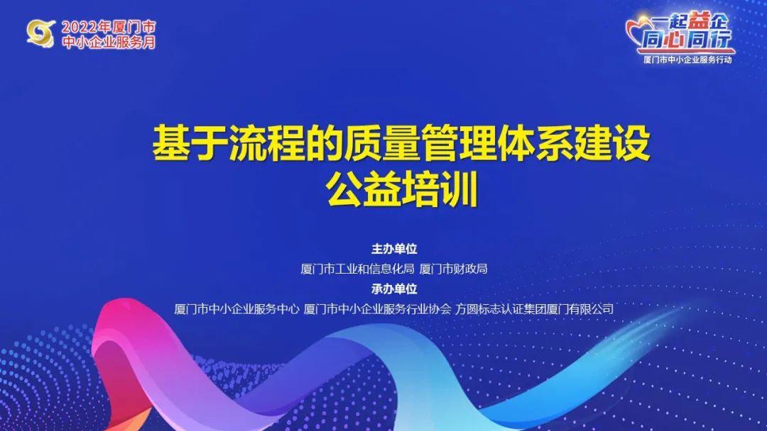 時(shí)間:2022年06月27日 6月14日,由廈門市工業(yè)和信息化局、廈門市財(cái)政局主辦,廈門市中小企業(yè)服務(wù)中心、廈門市中小企業(yè)服務(wù)行業(yè)協(xié)會(huì)、方圓標(biāo)志認(rèn)證集團(tuán)廈門有限公司承辦的“基于流程的質(zhì)量管理體系建設(shè) ”公益培訓(xùn)圓滿完成。本次培訓(xùn)為2022年廈門市中小企業(yè)服務(wù)月活動(dòng)之一,共吸引我市近60名企業(yè)的中高層管理者參加。