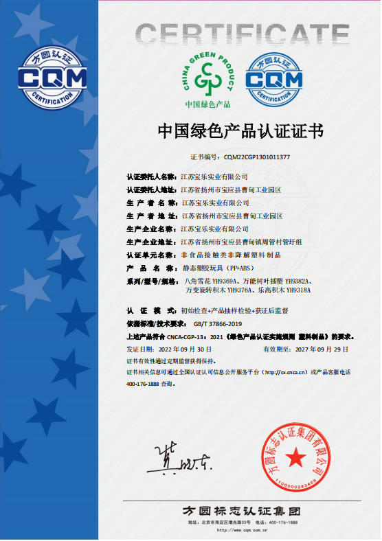 時(shí)間:2022年10月18日 近日,東方娃教學(xué)設(shè)備有限公司、江蘇寶樂(lè)實(shí)業(yè)有限公司在揚(yáng)州市場(chǎng)監(jiān)管局的指導(dǎo)和寶應(yīng)市場(chǎng)監(jiān)管局的支持下,在方圓江蘇公司的幫扶提升下,順利通過(guò)中國(guó)綠色產(chǎn)品認(rèn)證并獲得認(rèn)證證書(shū),這是方圓江蘇公司首次結(jié)合綠色產(chǎn)品認(rèn)證開(kāi)展小微企業(yè)質(zhì)量提升活動(dòng)的特色創(chuàng)新幫扶。